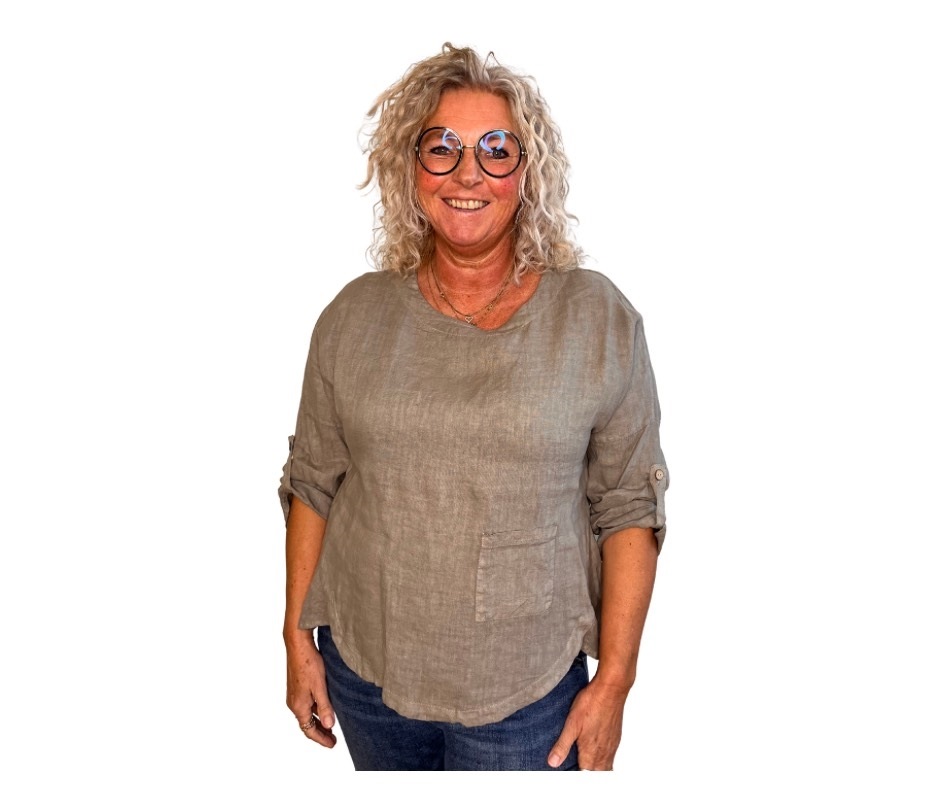 Bluse, Hør m/1 lomme og rund hals (6245) Fango