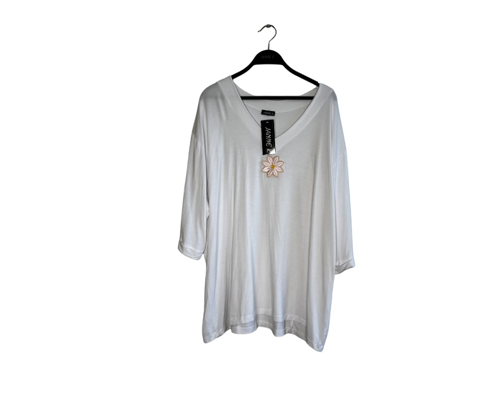 Bluse, Viscose m/v-hals og margerit, Hvid