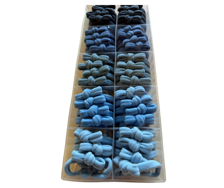 Hår elastik, Stof m/sløjfe, blå 100 STK