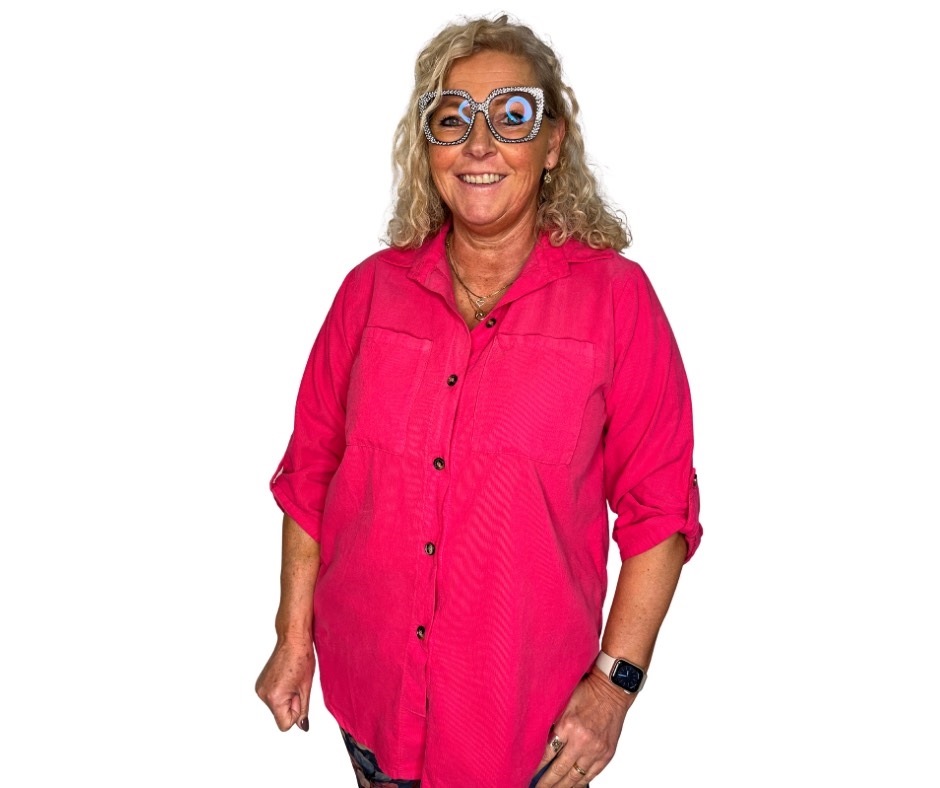 Skjorte, Fløjl, gennemknappet m/2 brystlommer, Hindbær