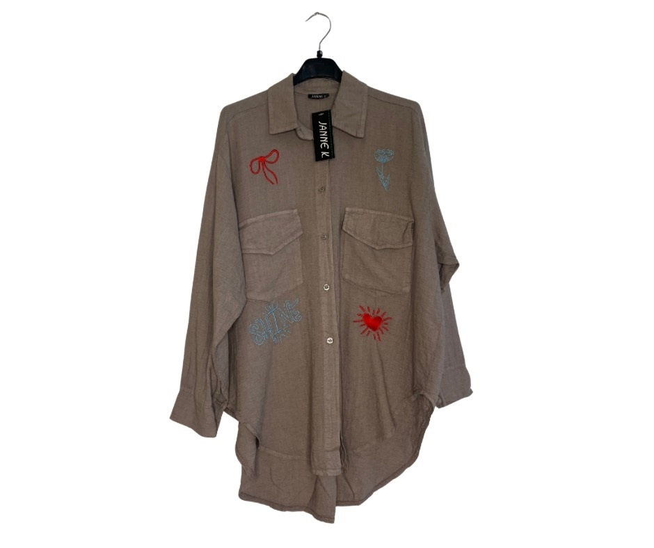 Skjorte, Hør/Viscose m/farvet broderi, Fango