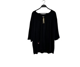 Bluse, Viscose m/v-hals og rosa sommerfugl, Sort