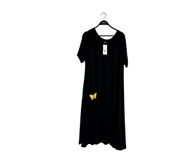 Kjole, Viscose, A-facon m/gul sommerfugl på lomme, Sort