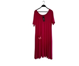 Kjole, Viscose, A-facon m/pink sommerfugl på lomme, Pink