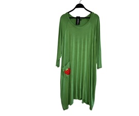 Kjole, Viscose m/raglan ærmer og jordbær på lomme, Grøn