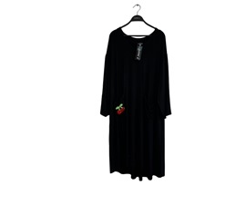 Kjole, Viscose m/raglan ærmer og hvid blomst på lomme, Sort