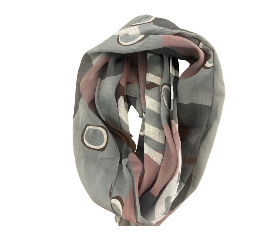 Tørklæde silke/bomuld, Abstrakt print, Grå