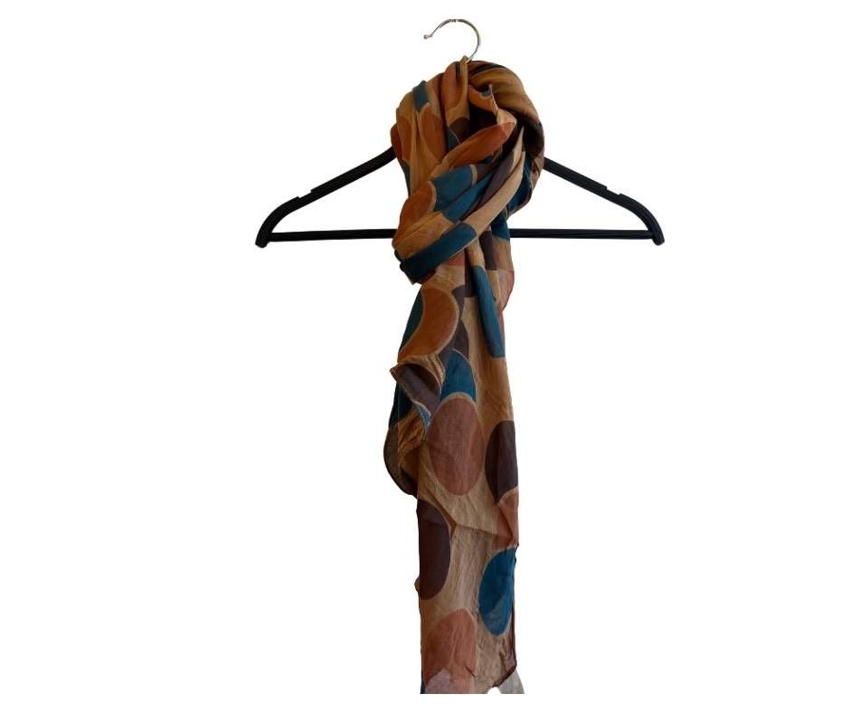 Tørklæde silke/bomuld, Farvede bolde, Brun