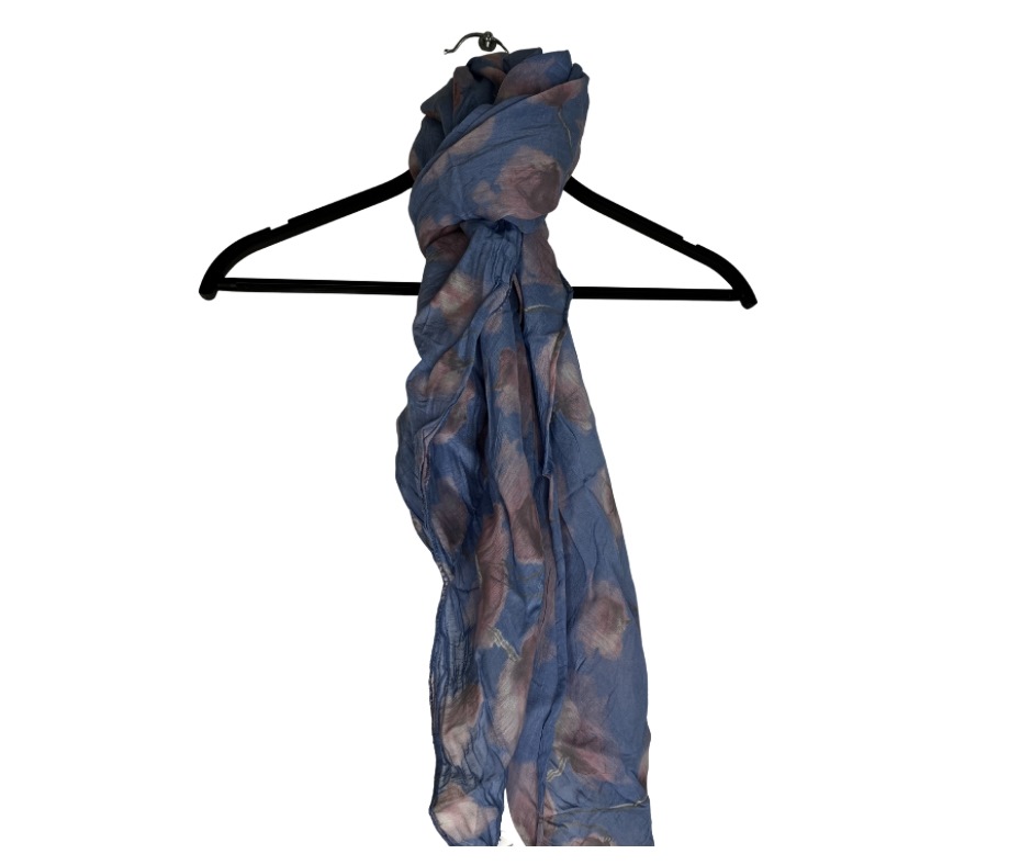Tørklæde silke/bomuld, Store Rosa Blomster, Blå