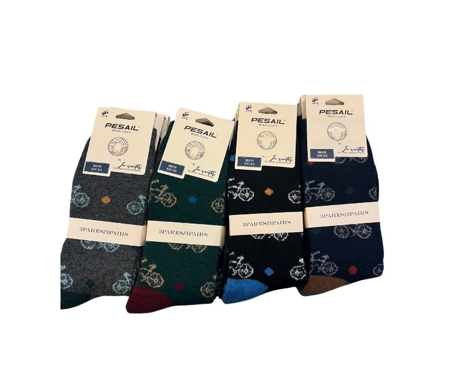 Uldstrømpe, 40-46, Pk. m/12 par, Print LH8090, Cykler