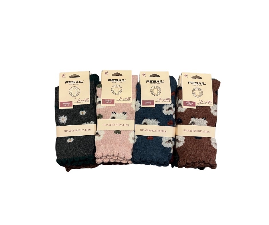 Uldstrømpe, 35-40, Pk. m/12 par, Print LM8608, Får m/krølkant