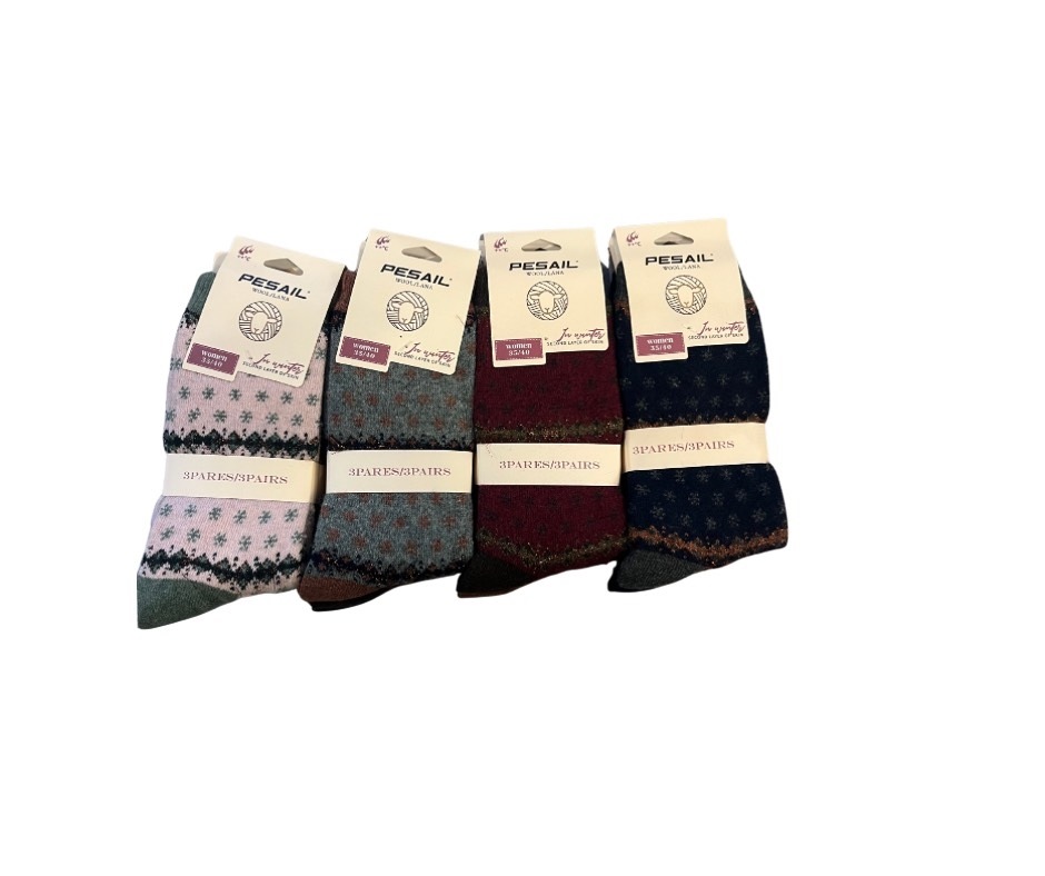 Uldstrømpe, 35-40, Pk. m/12 par, Print LM8609, Guldtråd